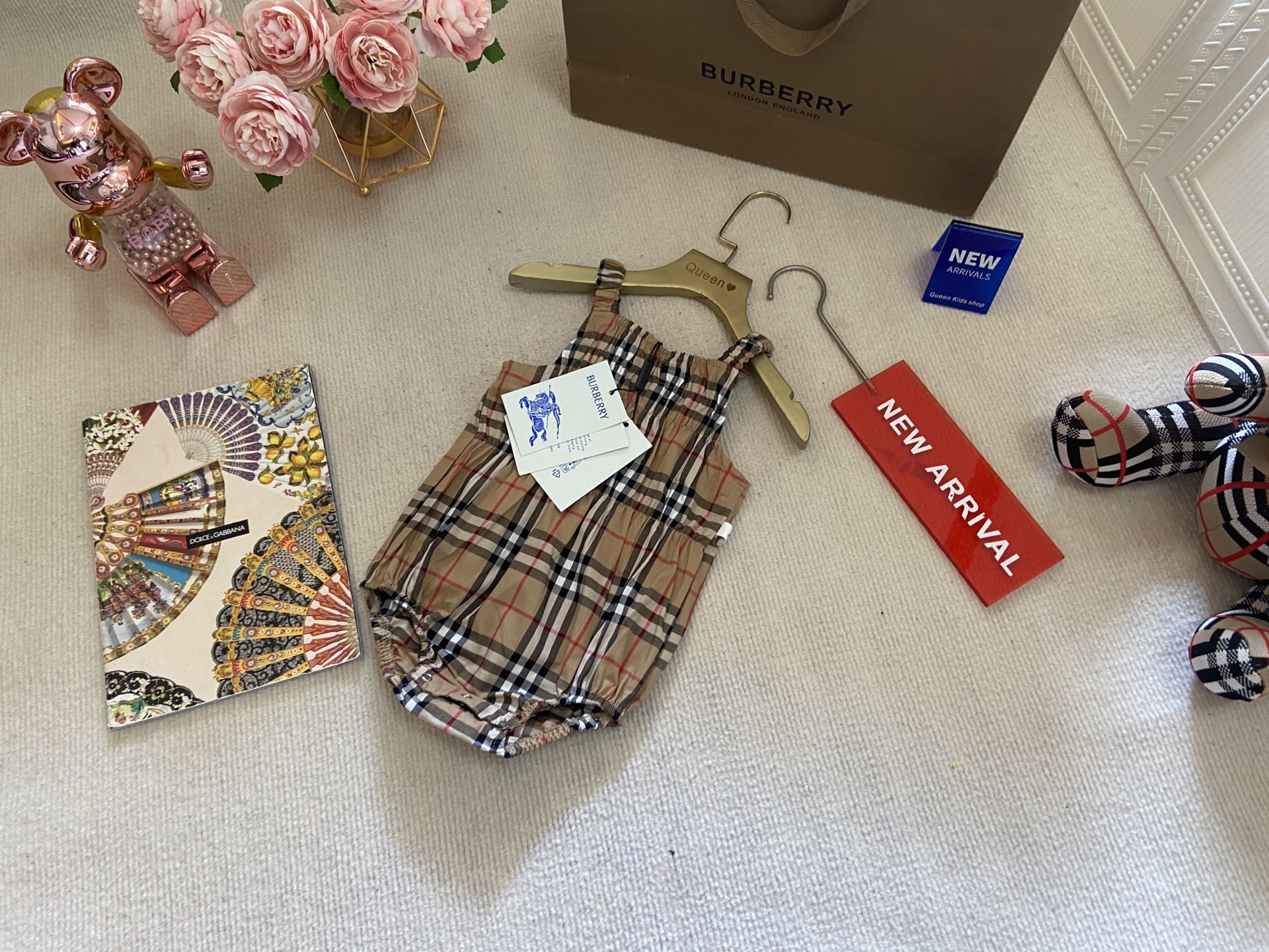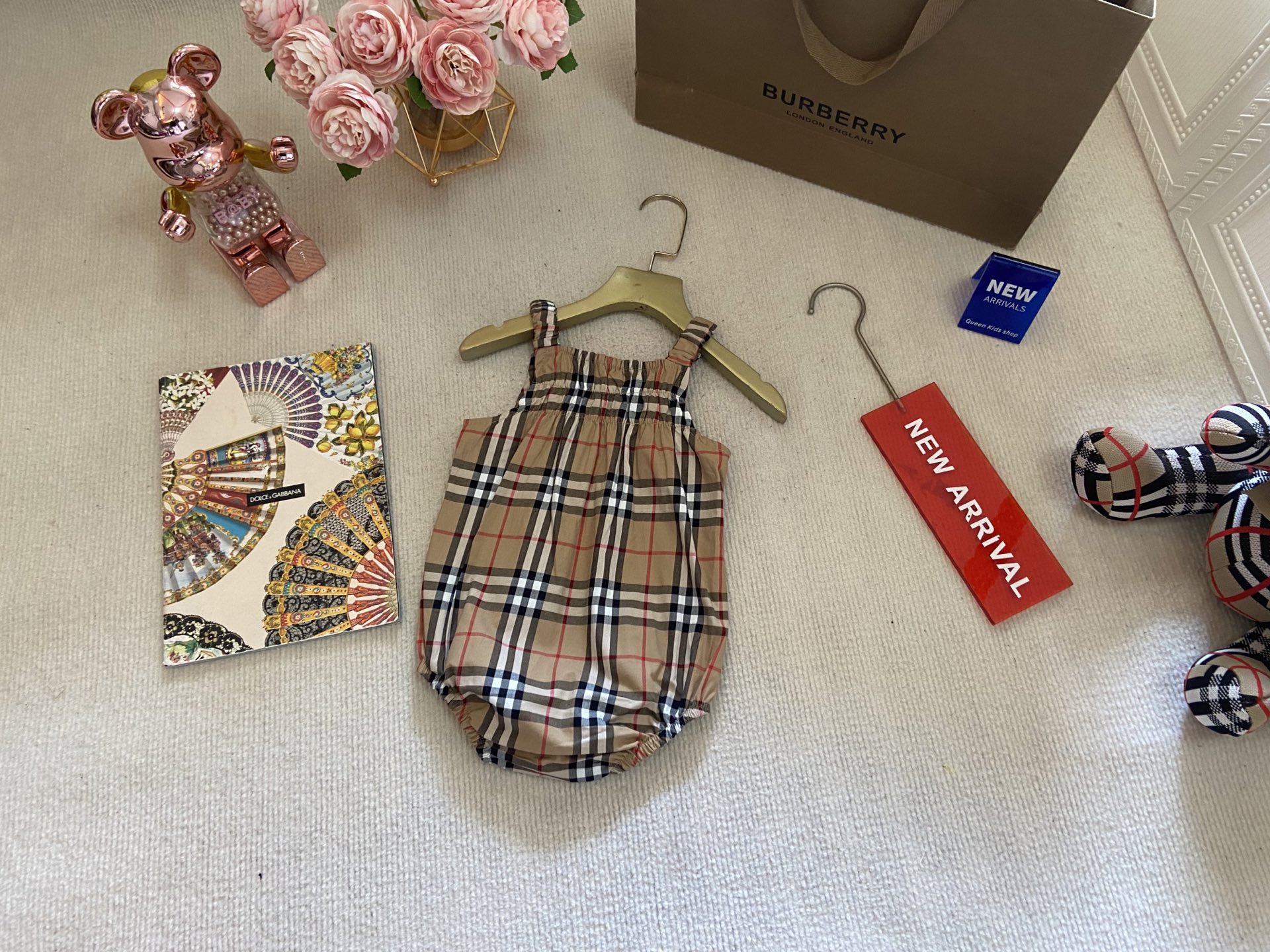 Book for one week! Burberry, high-end children's clothing, girls' haws, baby jumpsuits, pure cotton fabric, eco-friendly prints, comfortable and good-looking to wear, size: 73-80-90-100cm