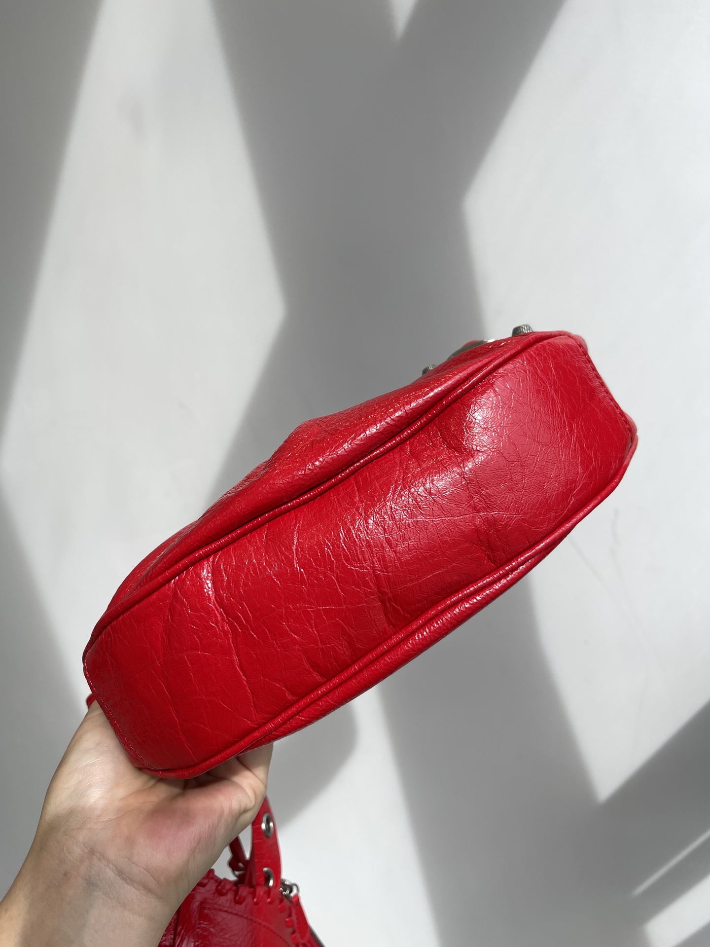 Balenciag BalenciAG SX SMALL 21 year EXCLUSIVE cabinet LATEST Le cagole latest rivets three in ONE armpit dumpling ?? BAG, one shoulder crossbody dumpling crescent-shaped bag, bag body MADE of imported crackled fine sheepskin, wrinkled fabric, shiny leather surface, very GOOD hand feel very DURABLE, softer with use MORE FLAVOR with use MORE There's no bag that looks better the older it's used. It's not afraid of scratches either. It can be placed freely in daily life without any concern at all. Rivets, tassels, weaving - every element is a classic. It is equipped with a detachable zipper storage bag and a detachable heart-shaped mirror, which can be used as a pendant. The zipper opening and closing design, paired with knotted leather pull plates and canvas lining, has an extremely large capacity. It feels particularly suitable for someone like me who wants to take everything out. There's no problem with putting everything in the space. Silver aged metal fittings. The detachable and adjustable wide shoulder straps are also equipped with woven shoulder pads, making the upper body light and comfortable. The details are quite well done. The classic motorcycle bag elements combined with the unique shape of the underarm dumpling bag are super attractive and really cool. They look great when worn and can catch your eye at first sight. It is light, durable and very tough. It can be carried by hand or across the shoulder. It comes in all four seasons. Whether you are shopping or going to any occasion, it is a very eye-catching combination. It is definitely the first choice for cool and cute girls. Come and take it to create a stylish look! Size: 26X16X10cm nNumber: #93737950