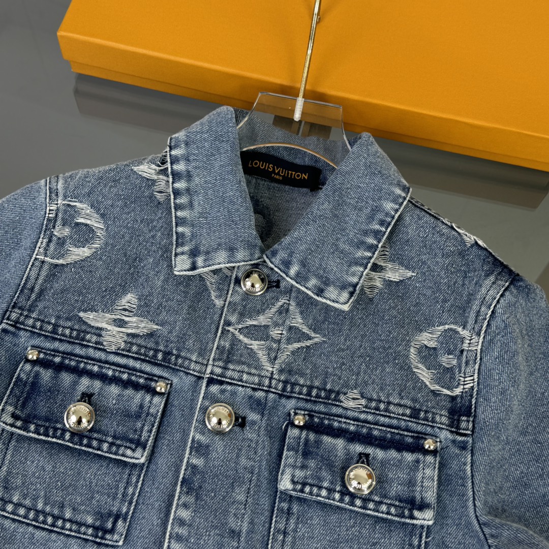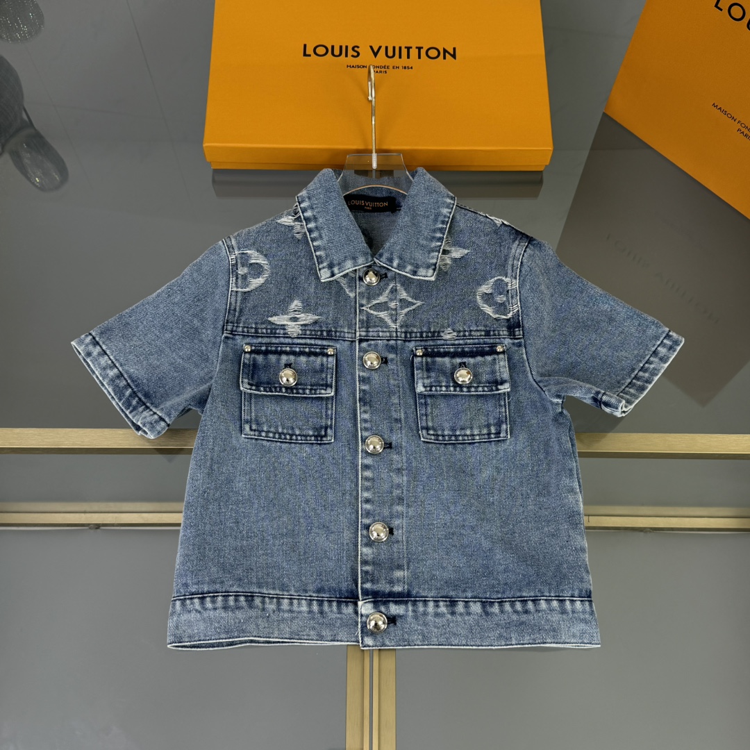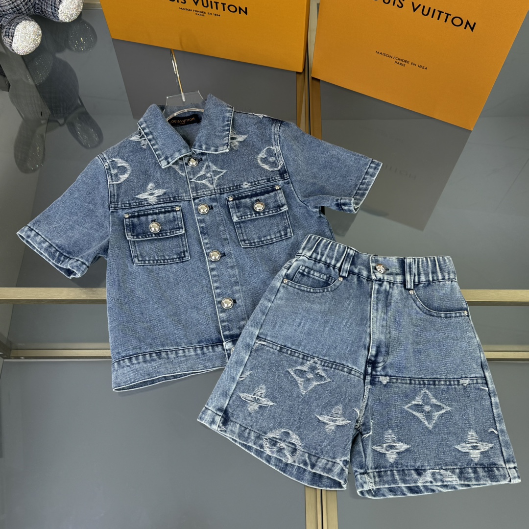 LV high-end children's wear, private cowboy suit, relaxing classic, custom jacquard denim fabric, wash water body comfortable, good-looking, code number: 100/110/120/130/140/150 cm