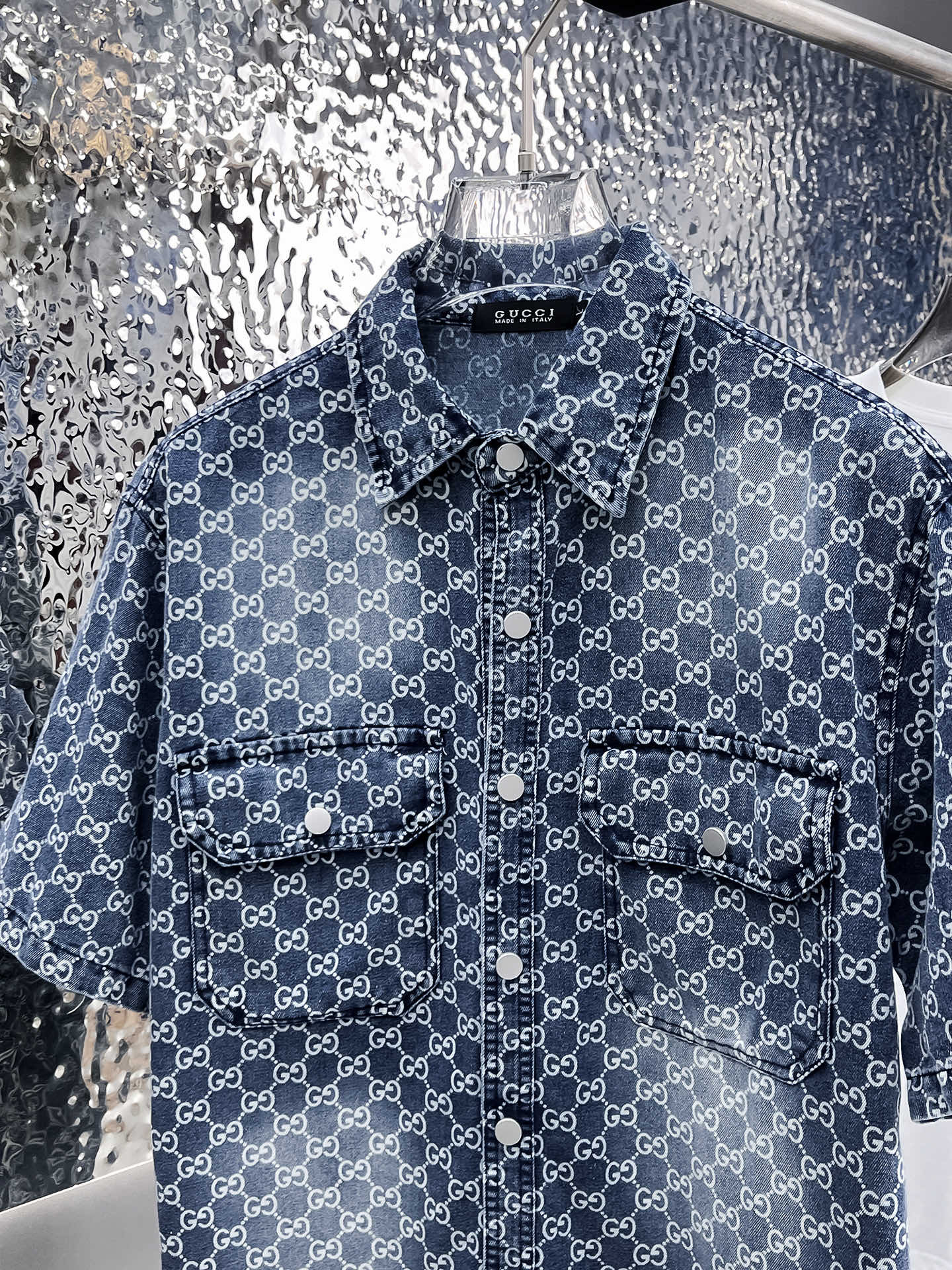 The GUCC short-sleeved shirt denim jacket is made of imported denim fabric, featuring a logo jacquard design and heavy washing. It is a blouses top jacket decorated with metal buttons, presenting a crisp and stylish look. With its unique Angle, it offers a brand-new interpretation of fashion and is the top choice for all kinds of outfits! Size: M-3XL