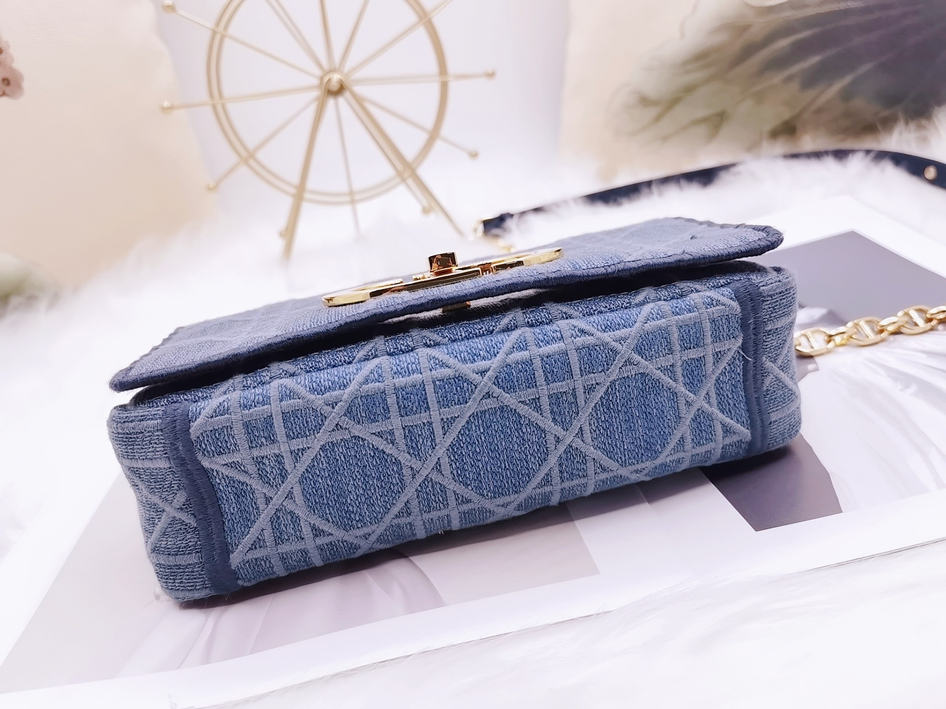 Dior Top brand original denim upgraded crossbody denim bag [D. Caro Denim collection ??] M8016 The new Caro handbag is meticulously crafted from denim blue washed fabric and adorned with the signature wicker embroidery. The four sides are washed in varying shades, creating a patchwork effect. Elegant and COOL, EXQUISITE and CHIC CHAIN, multiple ways of carrying, considerable capacity, SALT and sweet ?? It can be held by hand, carried over the shoulder or slung diagonally Dimensions: 20 x 12 x 7 centimeters