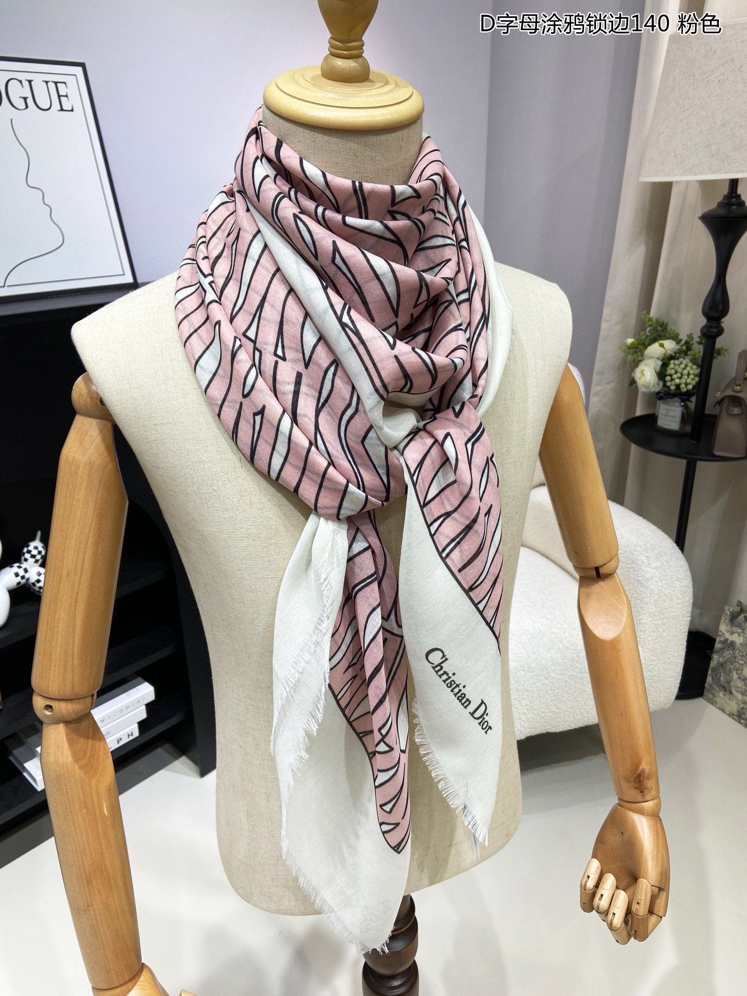 Bestselling ????Dior's latest counter signature [D letter graffiti hemlock 140] ?? Styles that go well with both vacation and daily wear ?? Order private stream] I want to go on vacation at first glance ? ? USUALLY THE OUTFIT IS ALSO VERY GOOD to match, THE WHOLE PERSON WILL LOOK ENERGETIC ???? A lot of needless to say, the details of quality are CLEARLY visible, definitely PRAISE THE high specification quality ??140*140 large handkerchief, 100% silk cashmere