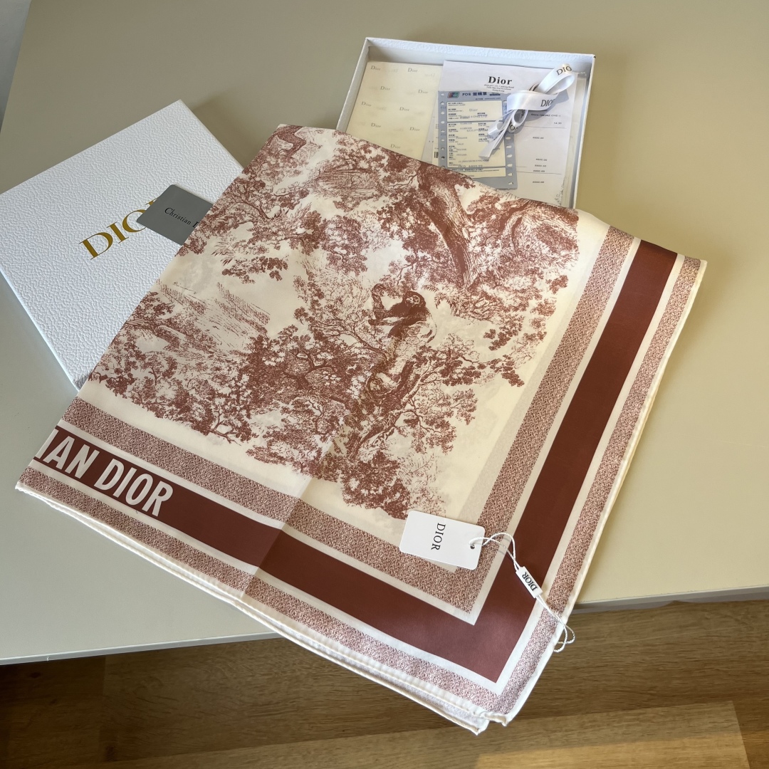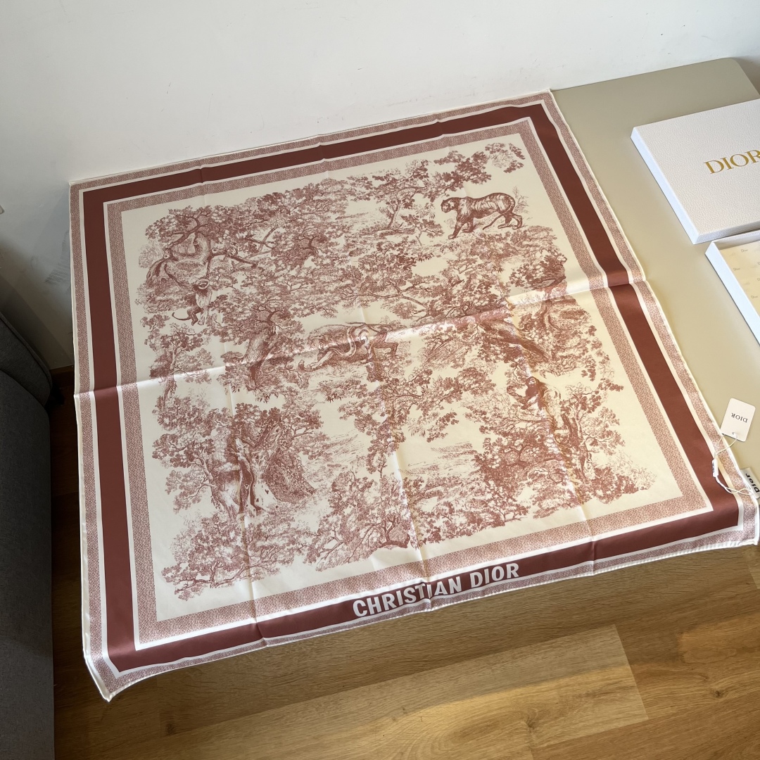 Dior Jungle hand-painted handkerchief size: 90x90cm Material: 100% silk The mystery of the tropical jungle, the leisure and ease of wild animals... A masterpiece of craftsmanship, stroke by stroke!