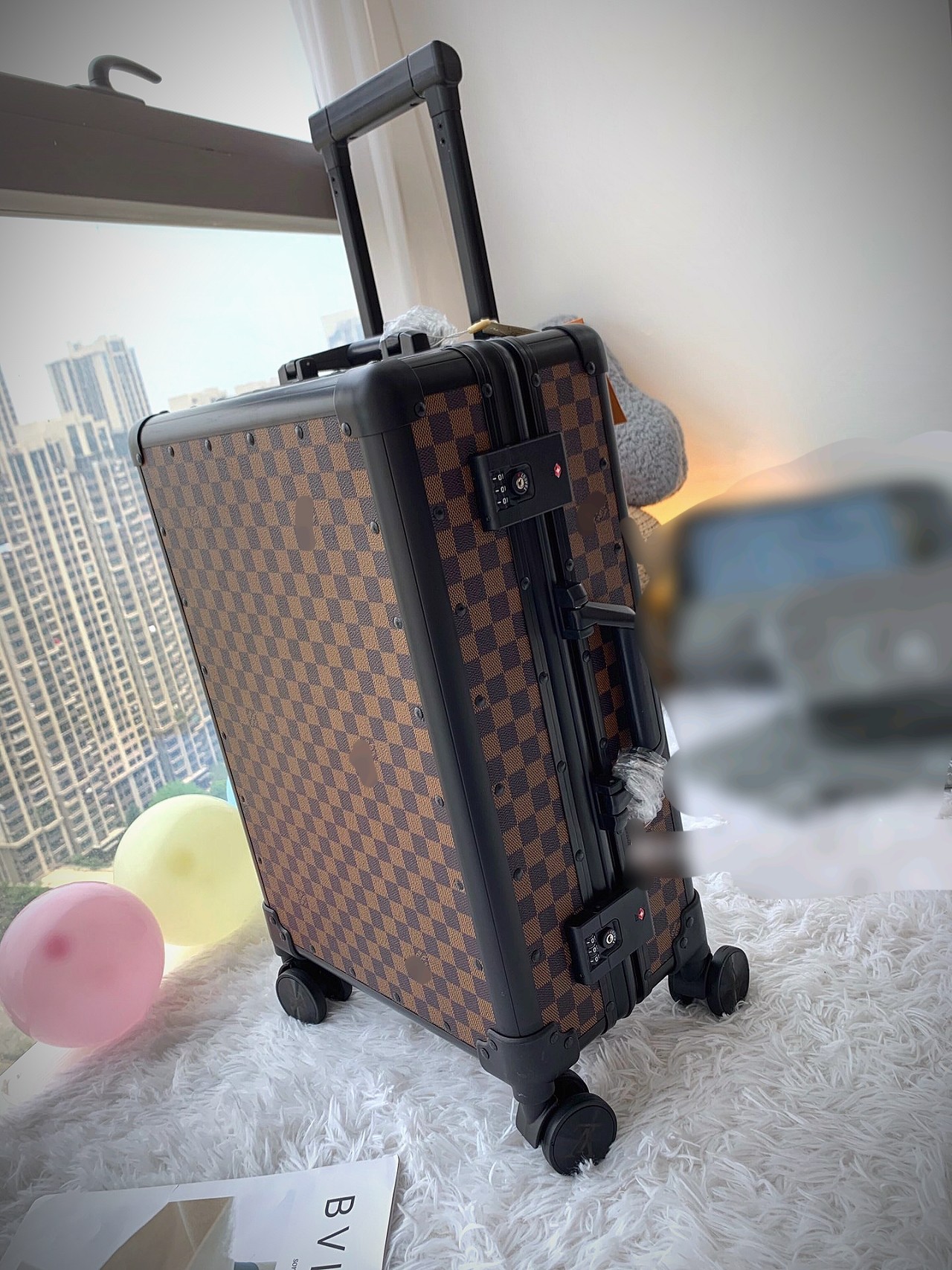 Donkey suitcase/trolley suitcase Another GROUP OF FASHION NEW FAVORITE, this RETRO FORM PULL BOX HAS ITS OWN UNIQUE KIND OF FASHION DRY STYLE, STRENGTH APPEARANCE LEVEL ALL ONLINE ?? DISK HIM! Classic floral materials paired with aluminum frames, durable and sturdy. ? Interpret the art of fashionable travel with outstanding quality, remarkable creativity and exquisite craftsmanship Unique design concept, full of fun, fashionable and trendy, combining retro style with perfect craftsmanship! ?? International Customs lock ?? multi-class pull rod, 3.6 swivel wheel mechanism, smooth sliding, travel easy and convenient. ?? grand and elegant LOGO, modern simple black interior, metal buckle, partition interchangeable, easy and convenient extension strap adjustment ?? Main colors: Decal - black - black check - coffee check - black - white ?? Dimensions: 20 inches (boarding allowed) length, width and height: 37/21/57 24-inch/towing box