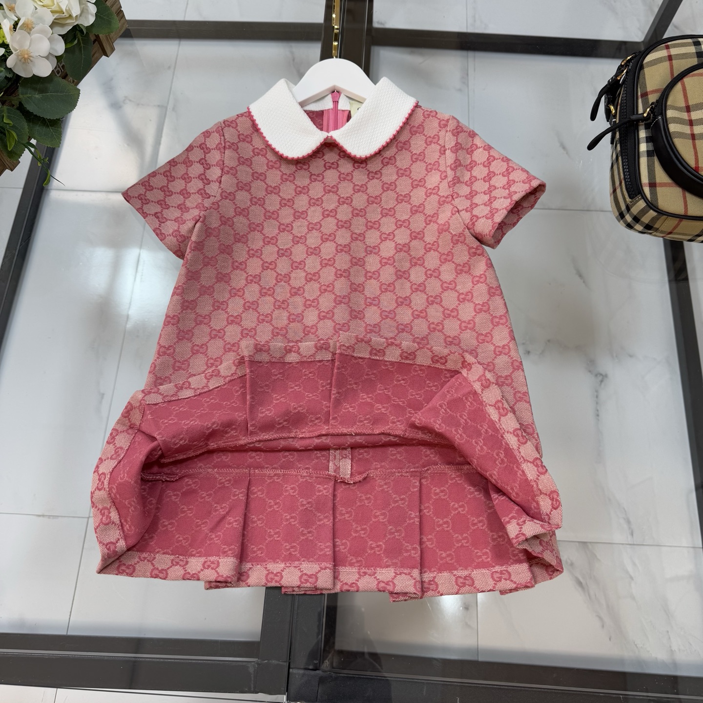 Gucci, high-end children's clothing, girls' dress, special custom carre color, every yarn is custom-woven and dyed, 80 cotton and 20 polyester fiber: super soft high-density jacquard fabric, ready-to-wear enzymatic water washing, making the fabric environmentally friendly and clean, and also making the fabric feel softer and more comfortable, friendly to the skin, looking beautiful when worn. Size: 110/120/130/140/150/160cm