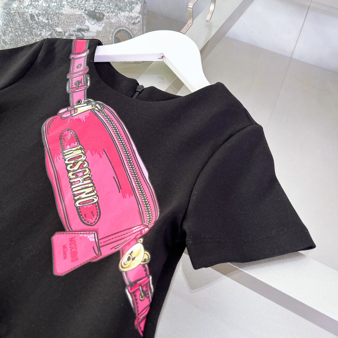 Moschino, high-end children's clothes, girls dress, pure cotton terry fabric, printing is 3 d environmental ? ? printing, have stereo feeling more than the ordinary printing, each packet lifelike, upper body comfortable, good-looking, code number: 100/110/120/130/140/150 cm