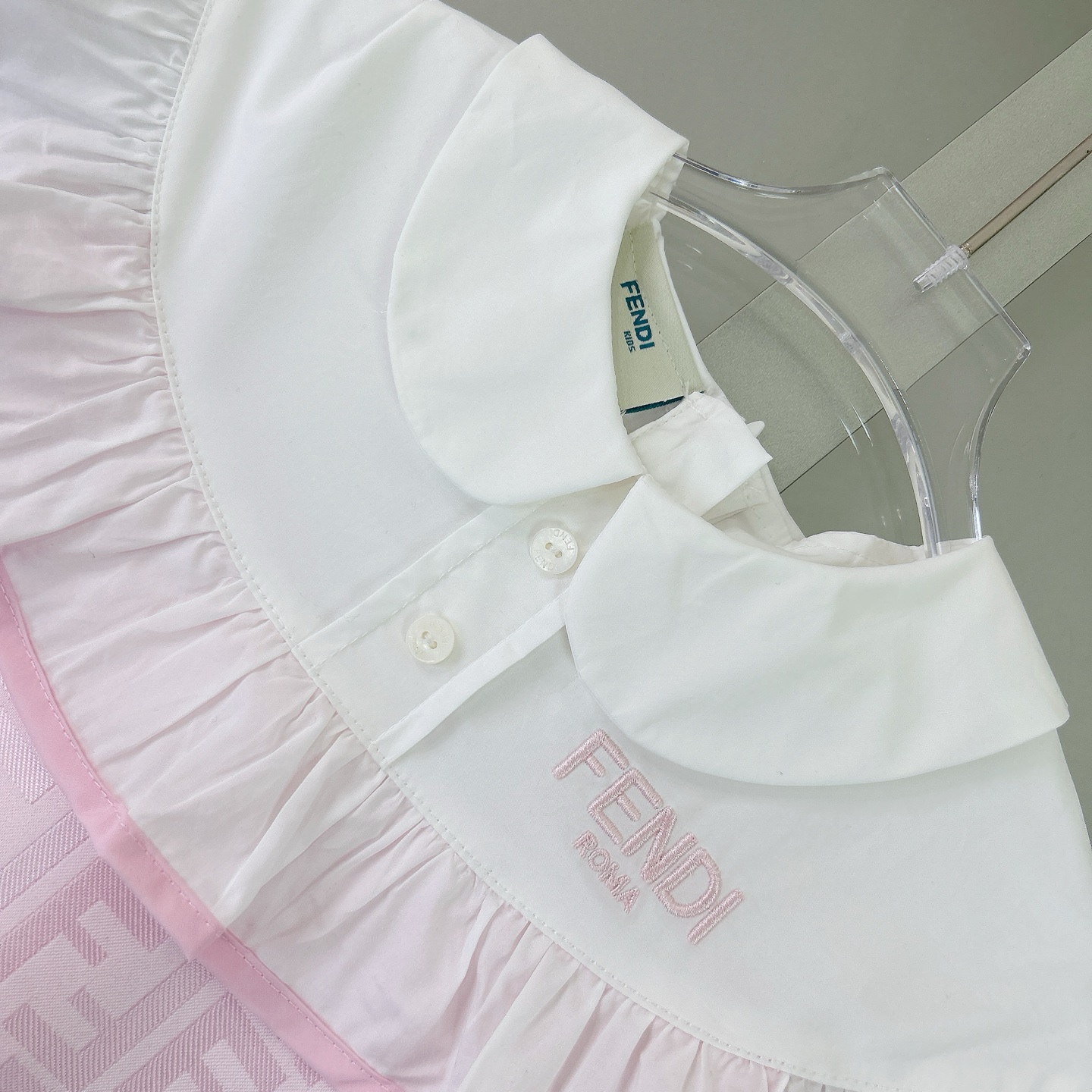 Fendi, high-end children's clothes, girls dress, heavy delicate embroidery, decorated with the whole picture of FF fastens with color logo, the upper part of the body comfortable, good-looking, code number: 90/100/110/120/130/140/150/160 cm