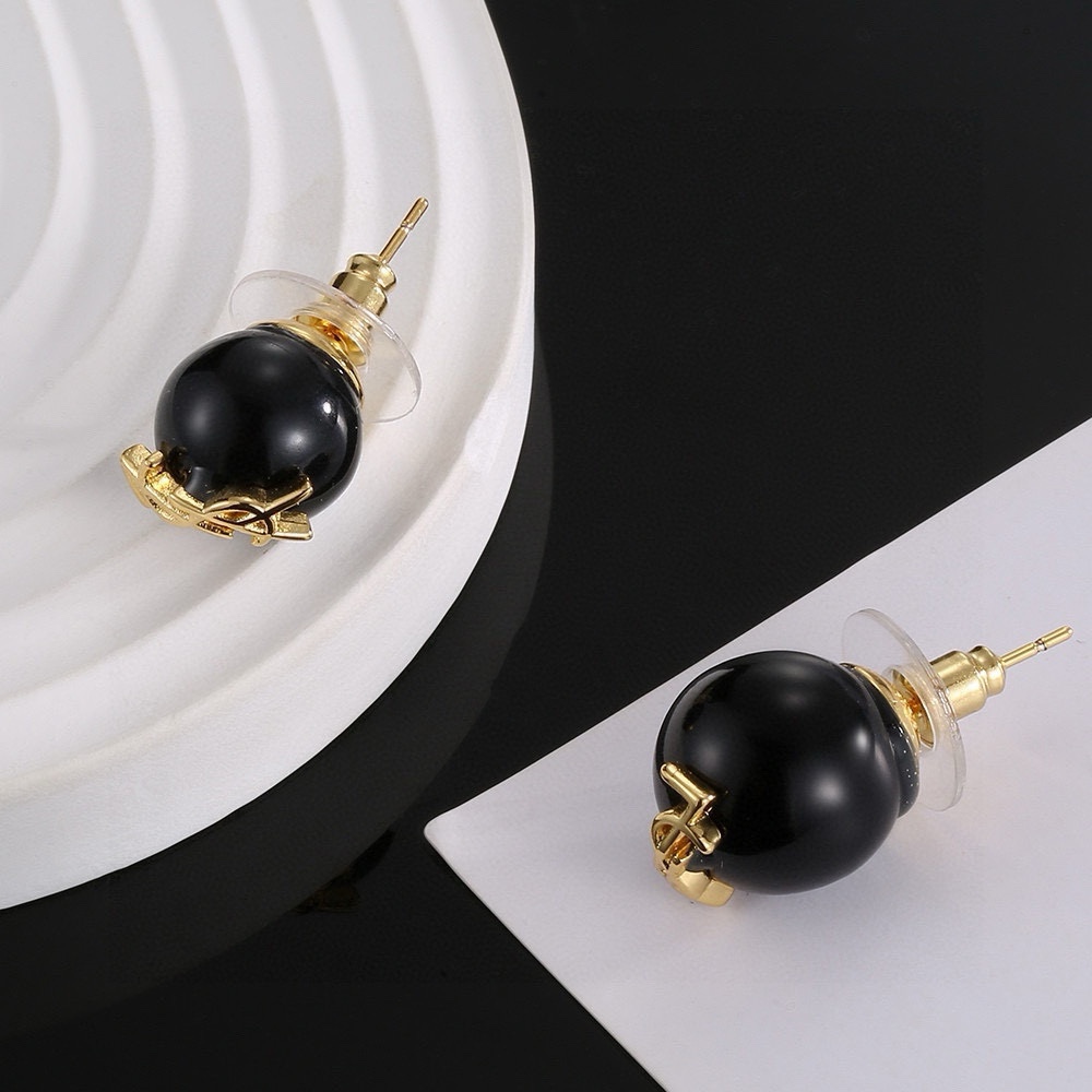 YSL Saint Rowland pearl studs, PEARL STUDS SO EXQUISITE, ALSO with YSL logo, two large one SMALL, little trick GET Ear Earrings/Ear studs
