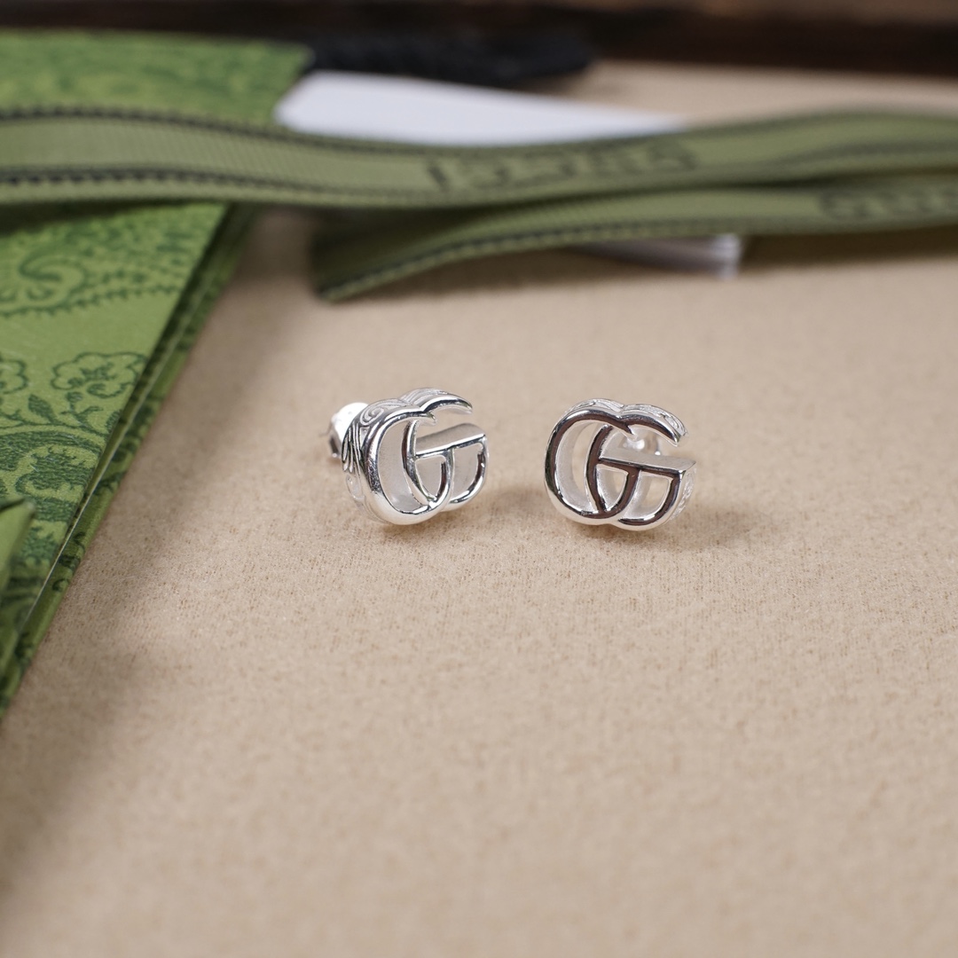gucci interlocking double g bright silver opening stud earrings Distinctive double g, bright silver collection for different styles, engraved with Arabian vine pattern on the surface, exquisite workmanship Earrings/Ear studs