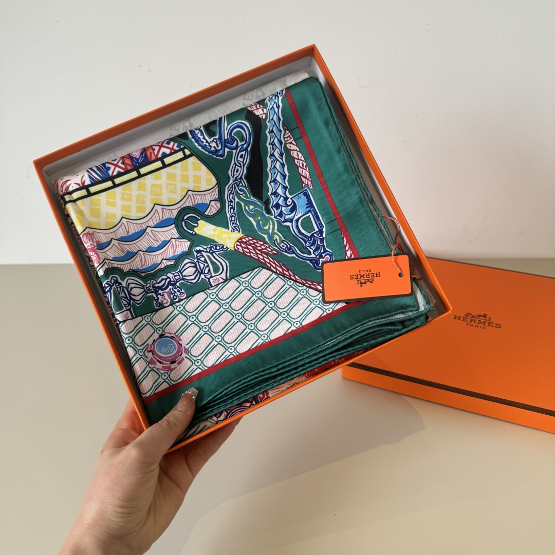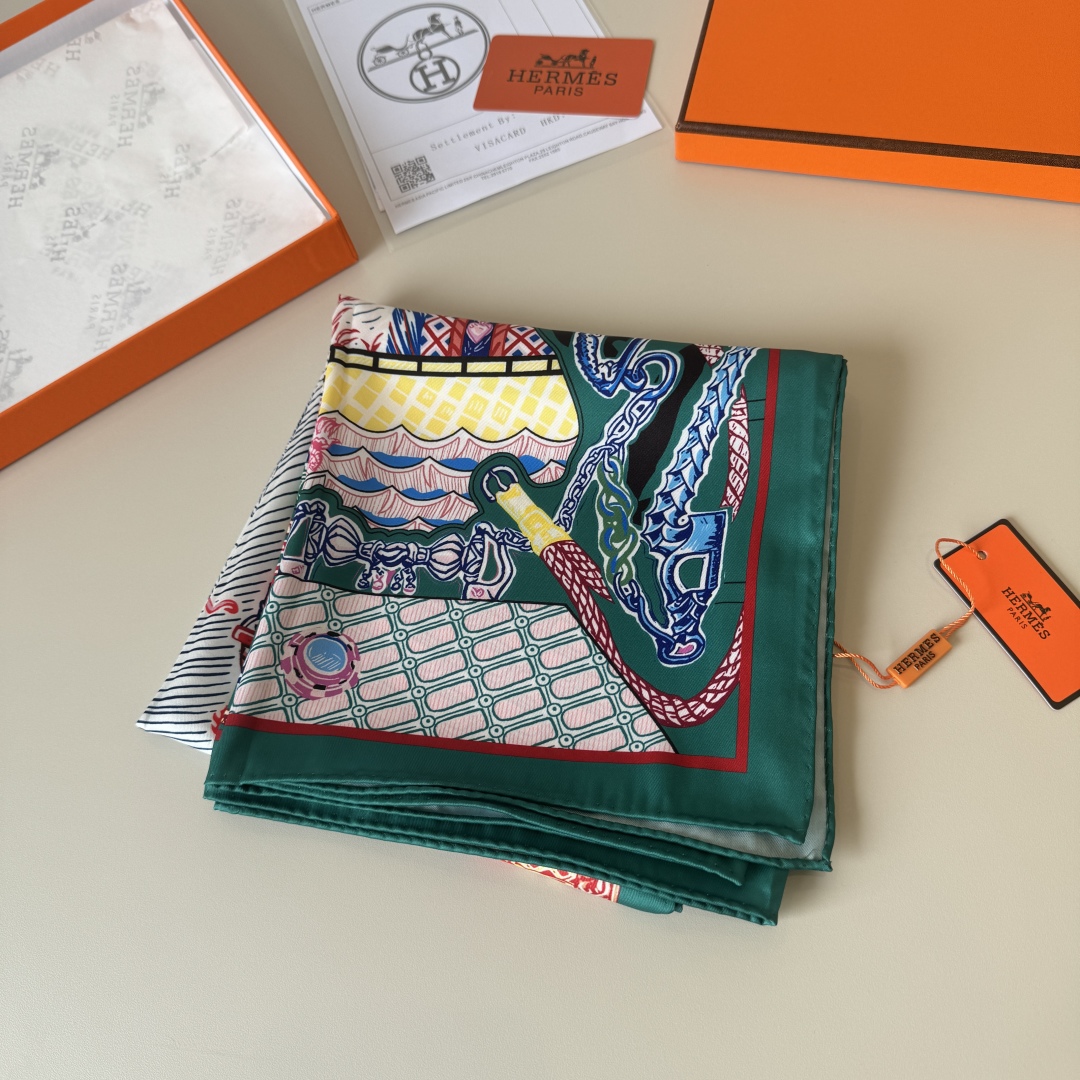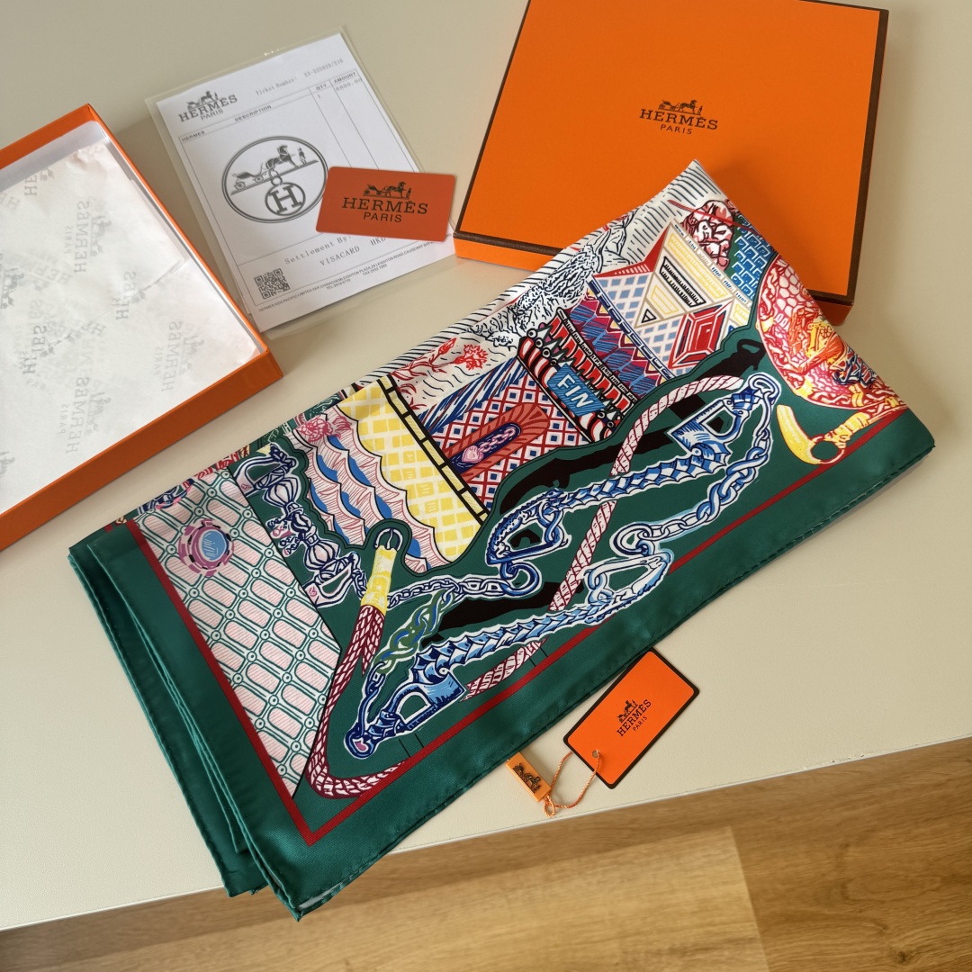 The Hermes handkerchief "Silk Scarf Adventure" is simply stunning. With its dreamy design, it has become a masterpiece in the private collections of countless collectors! Size: 90*90cm 100% silk