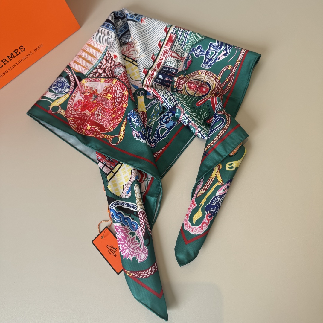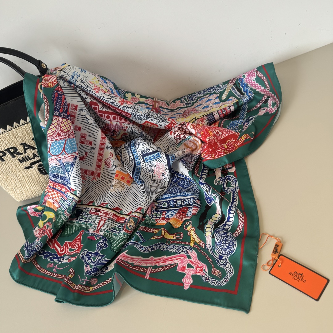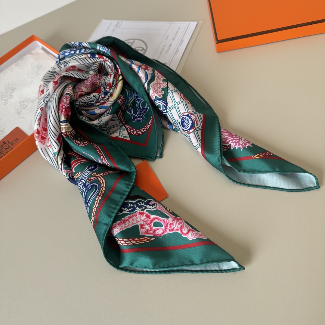 The Hermes handkerchief "Silk Scarf Adventure" is simply stunning. With its dreamy design, it has become a masterpiece in the private collections of countless collectors! Size: 90*90cm 100% silk