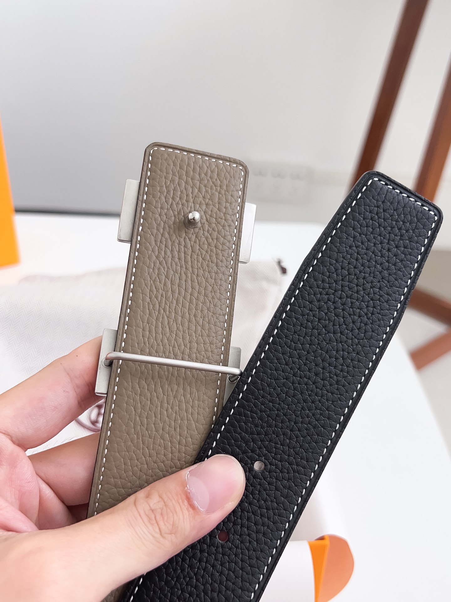 Original Hermes item, width 3.8cm Sg Double-sided top layer togo lychee grain, soft leather material. It can be used on both sides, with fine workmanship and excellent quality. Buckle: Stainless steel buckle (gold and silver)