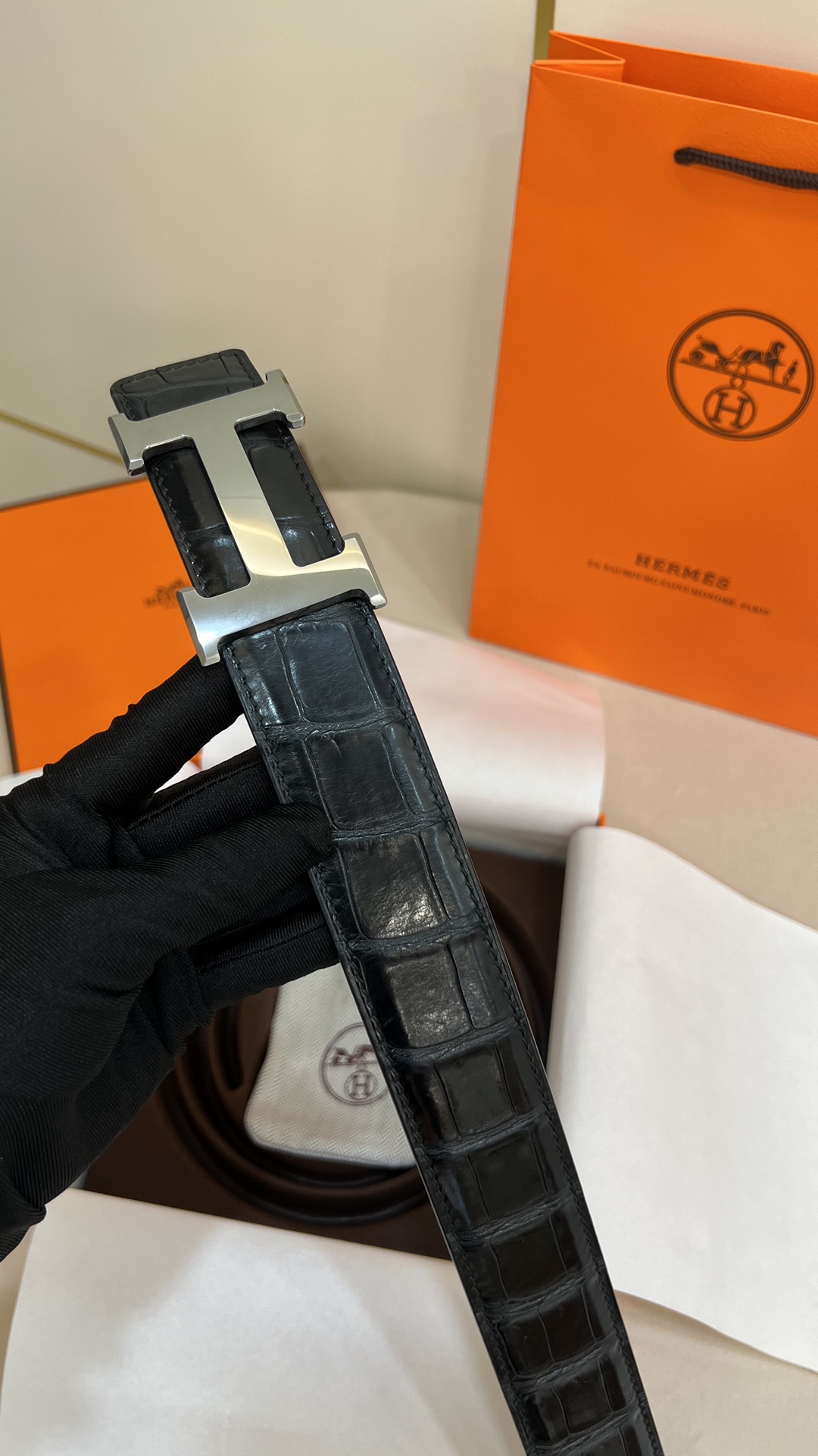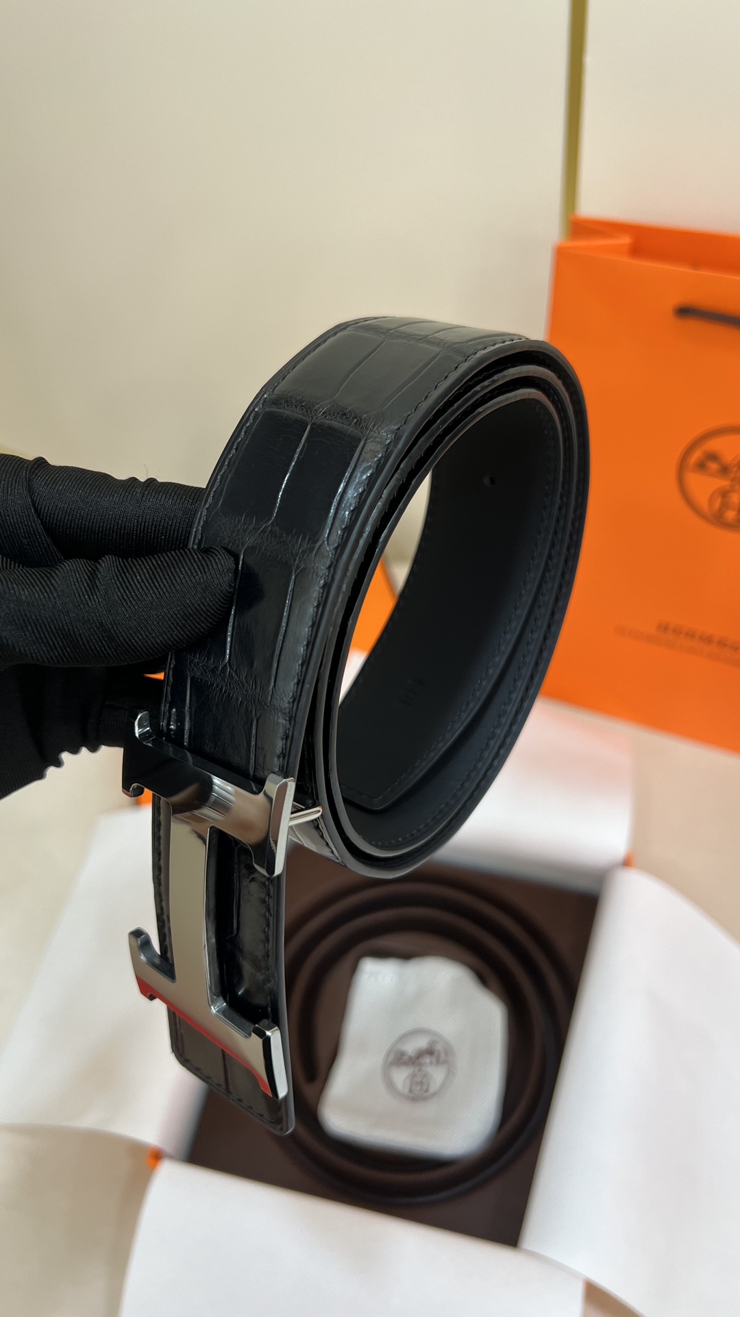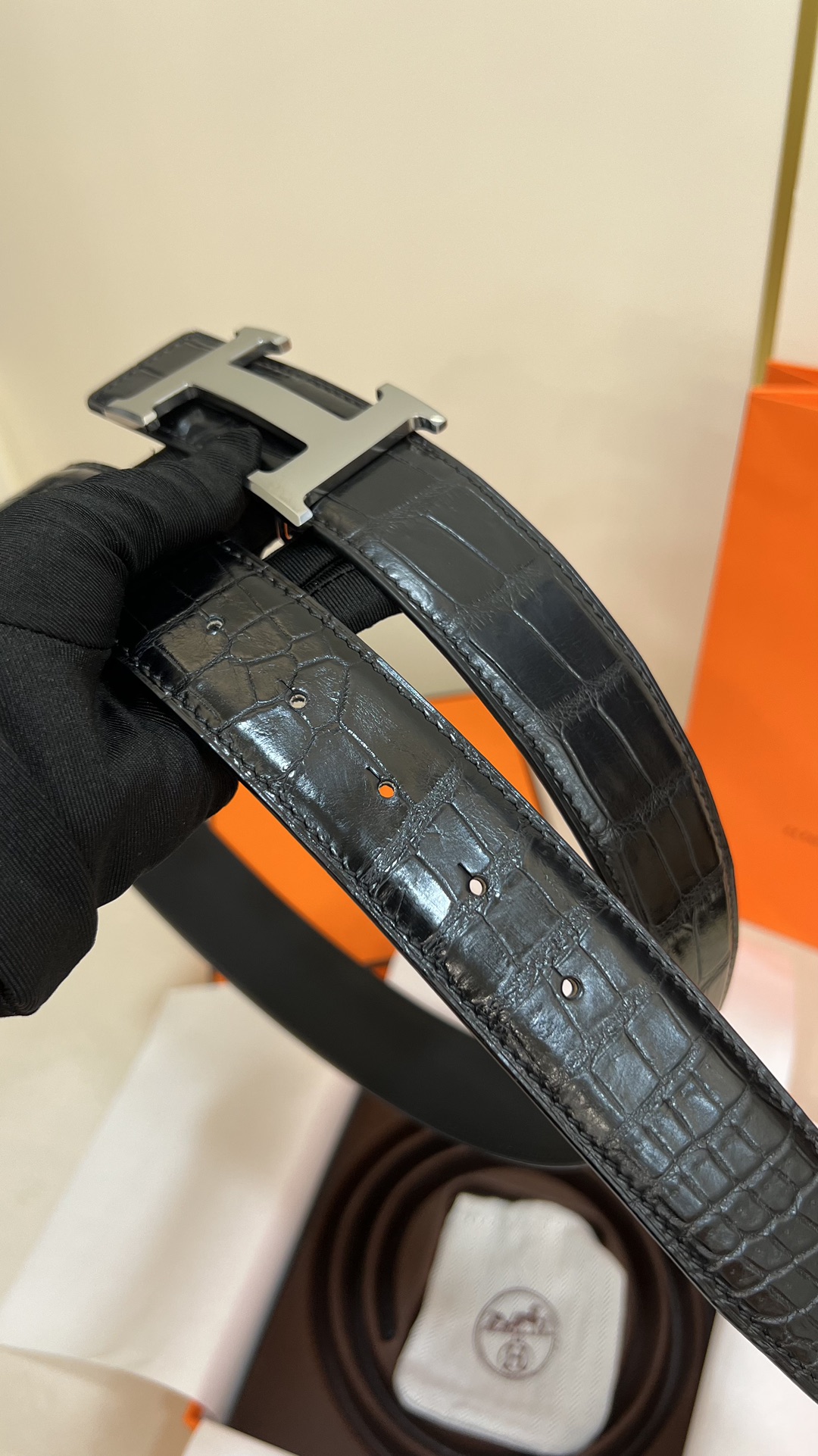 This men's Hermes model features a 3.8cm pure copper metal buckle, paired with a embossed top-grain crocodile leather belt. The base leather is made of top-grain calfskin. The original order is of high quality without losing its style.