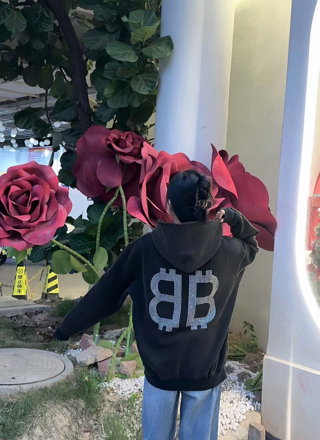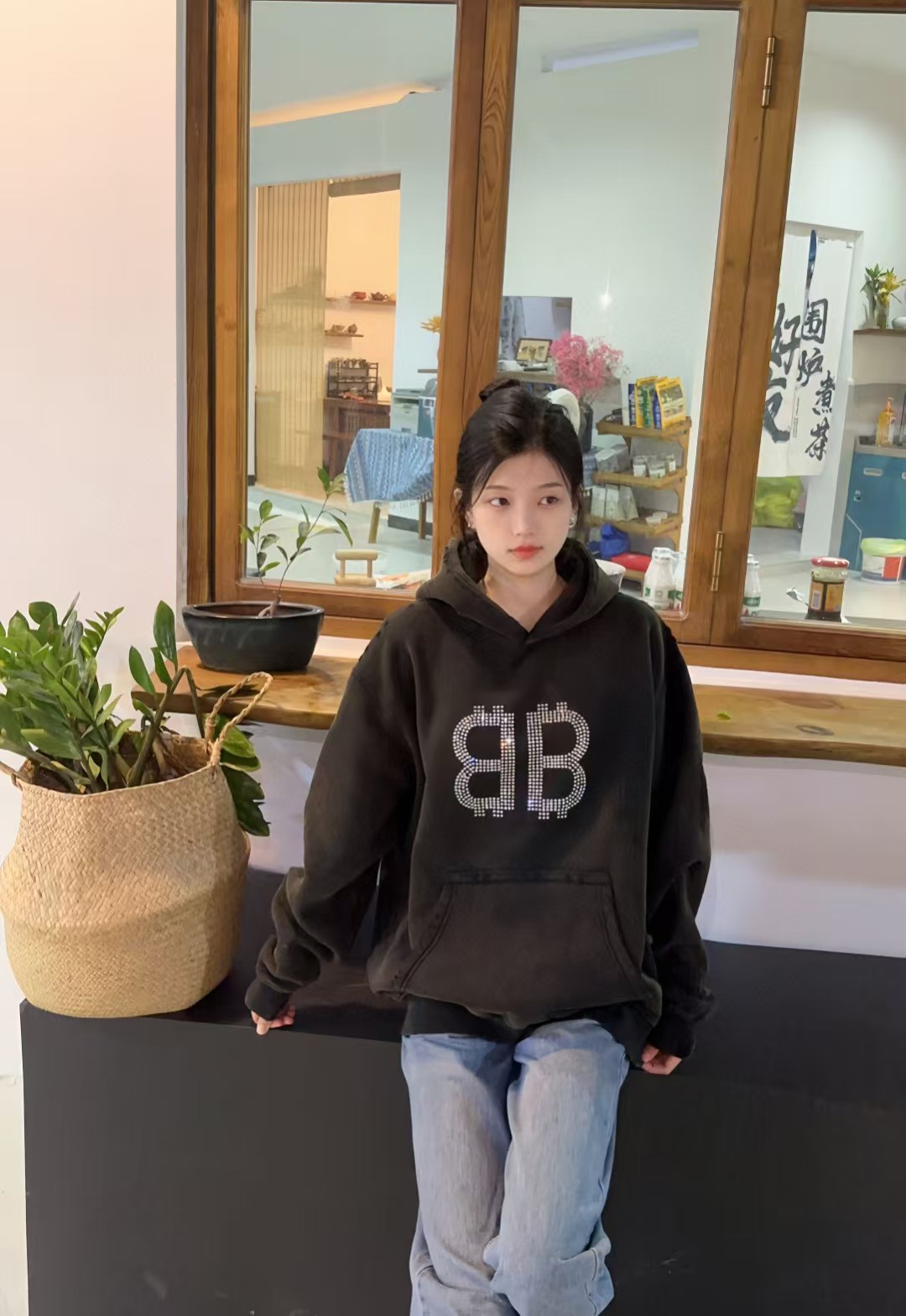 Balenciaga/ Balenciaga 24Fw Double B Bitcoin diamond ironing and Fleece hooded sweatshirt wearing effect #