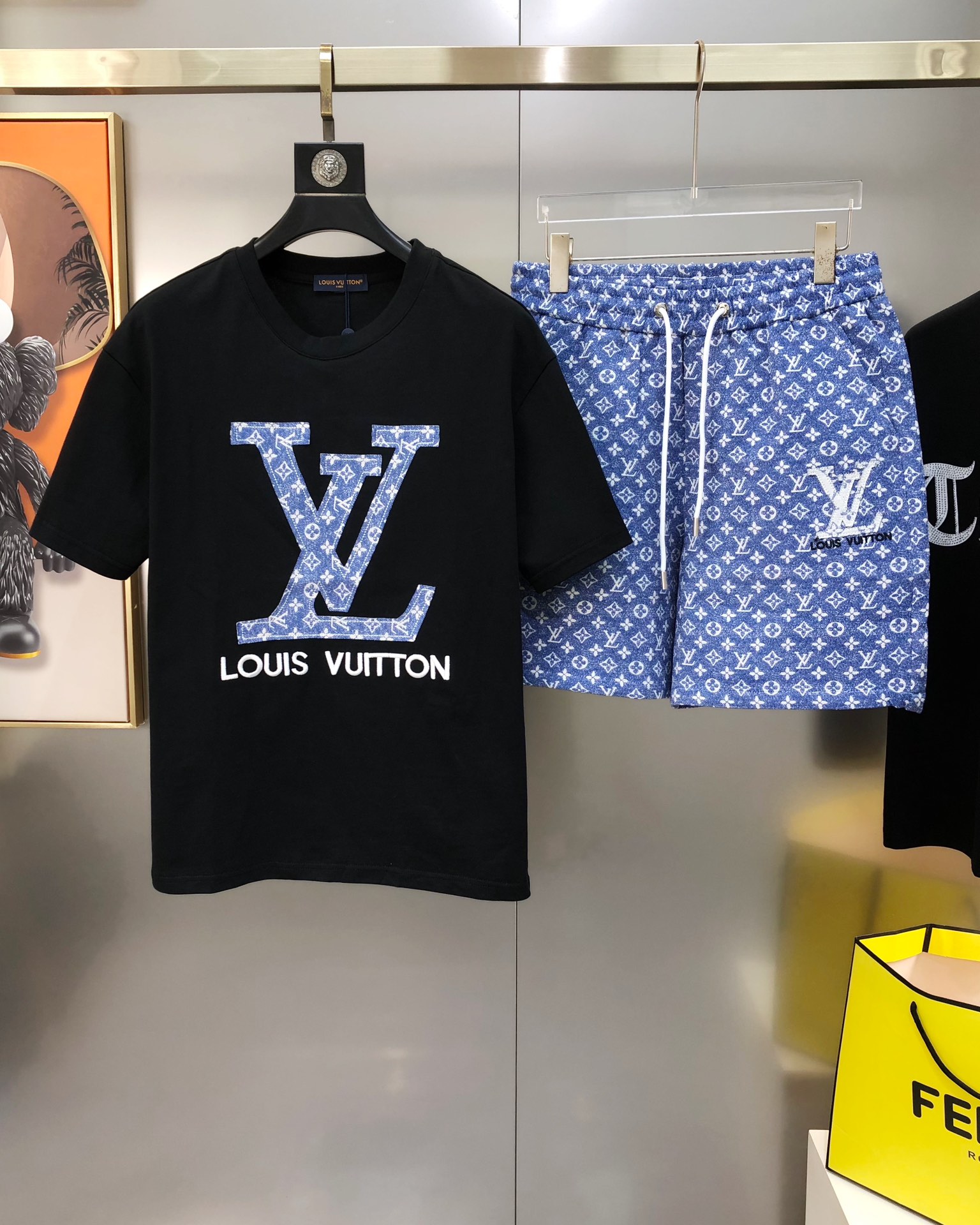 LV Louis Vuitton Spring/Summer 2025 new single men's casual set short sleeves and shorts for sale without disassembly ?? The official website is also selling the big hit ?? ? high version fashionable and versatile ? three-dimensional embroidered letter patchwork logo pattern design made of original imported pure cotton fabric pants jacquard process denim pure cotton fabric soft and delicate hand feel comfortable to wear Original imported engraved hardware accessories for customers, fine workmanship by the OEM factory, smooth lines, exquisite craftsmanship, superb style, very fashionable and cool when worn ?? highly recommended! Counter size: M-3XL (The largest size can wear about 190 pounds. Please report your height and weight when placing an order.) Shipped the next day in black and white