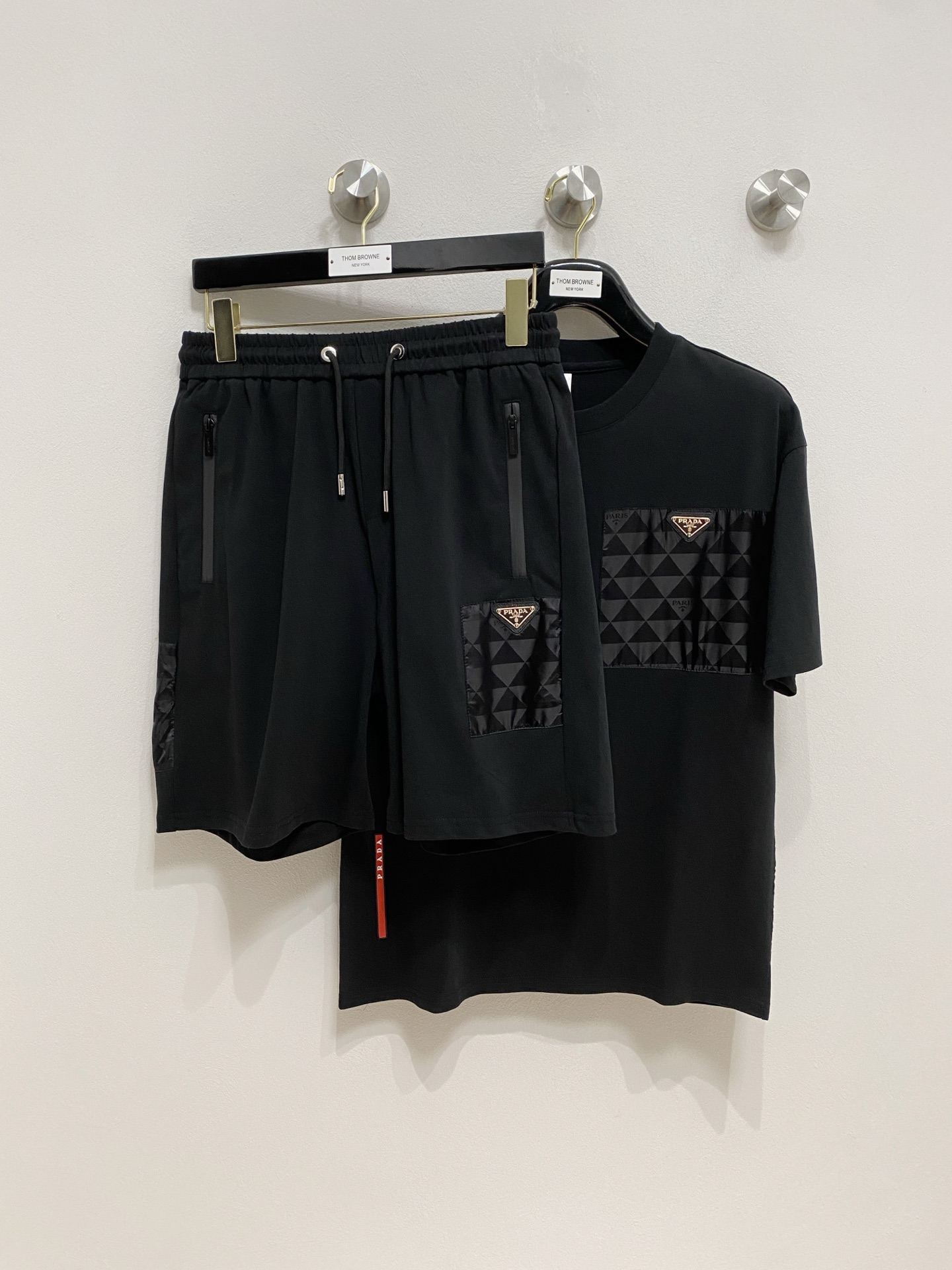 Prada ???? high-end custom 2025 spring/summer new collection launch counter the latest short-sleeved and short-shorts casual set high-end custom design avant-garde fashion! The brand logo emphasizes high-end custom pure cotton fabric with meticulous craftsmanship design. Soft to the touch. Comfortable to wear. Counter level exquisite vehicle lines. The workmanship is exquisite. The wearing effect is incredibly cool! Essential items for stylish men! Size: M-3XL