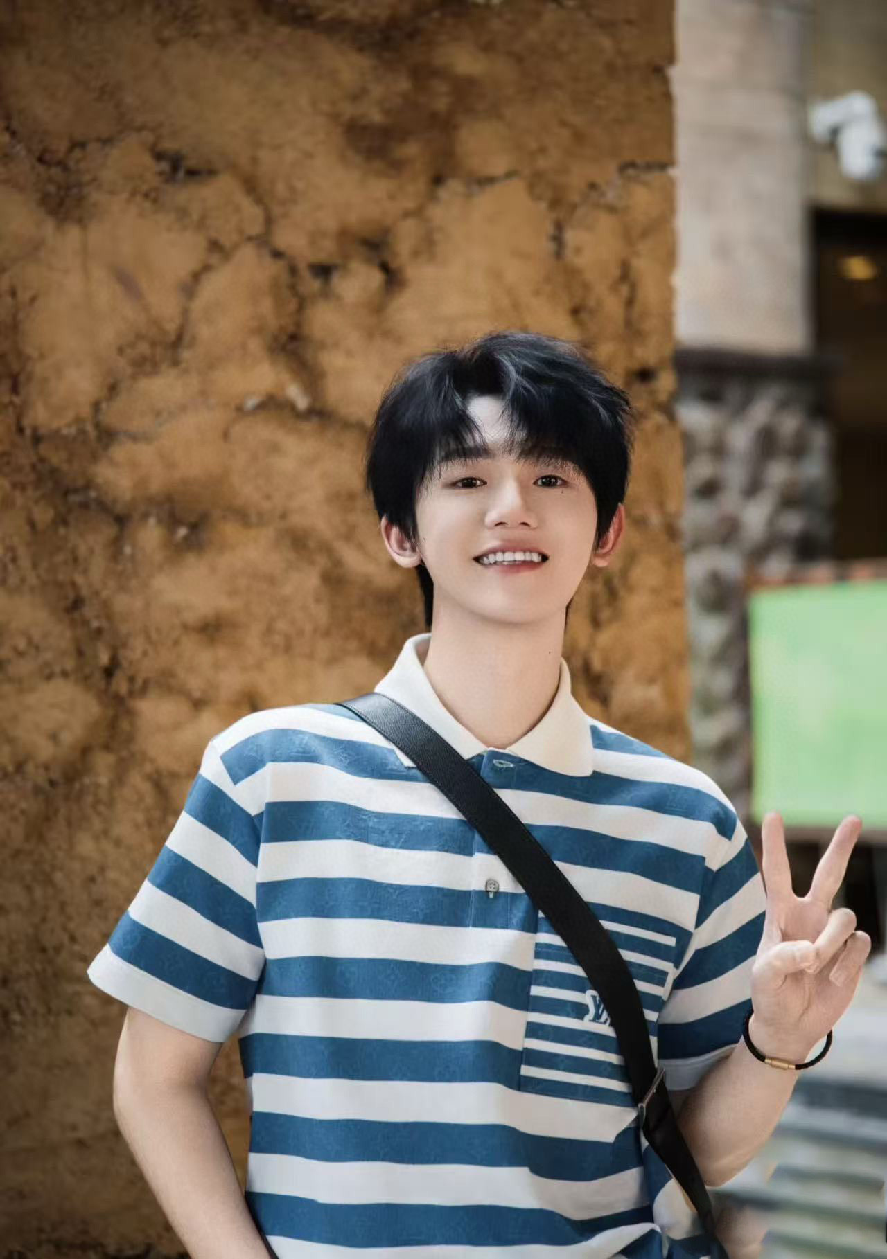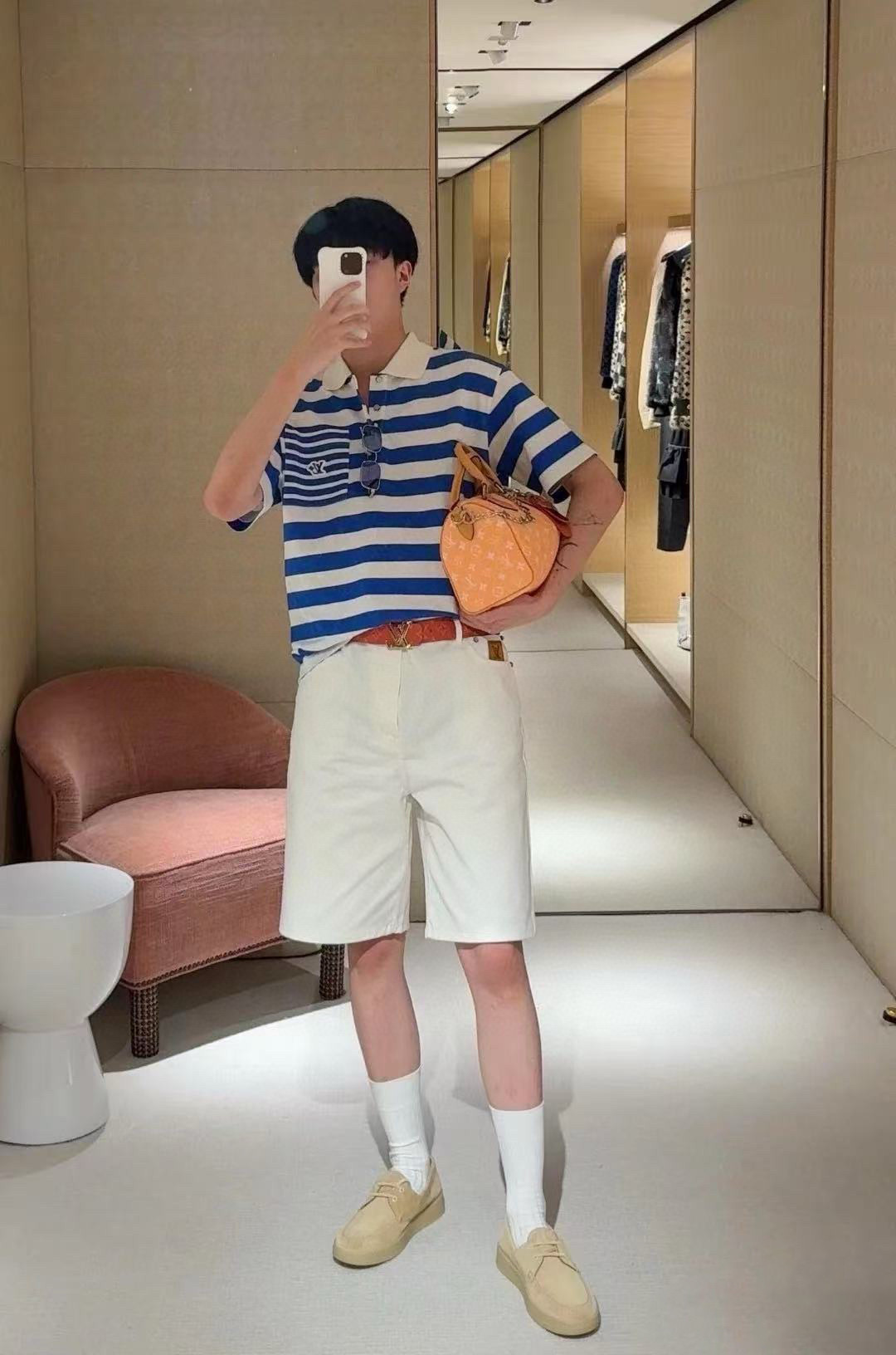 #Louis Vuitton 25ss blue striped Polo short-sleeved top wearing effect