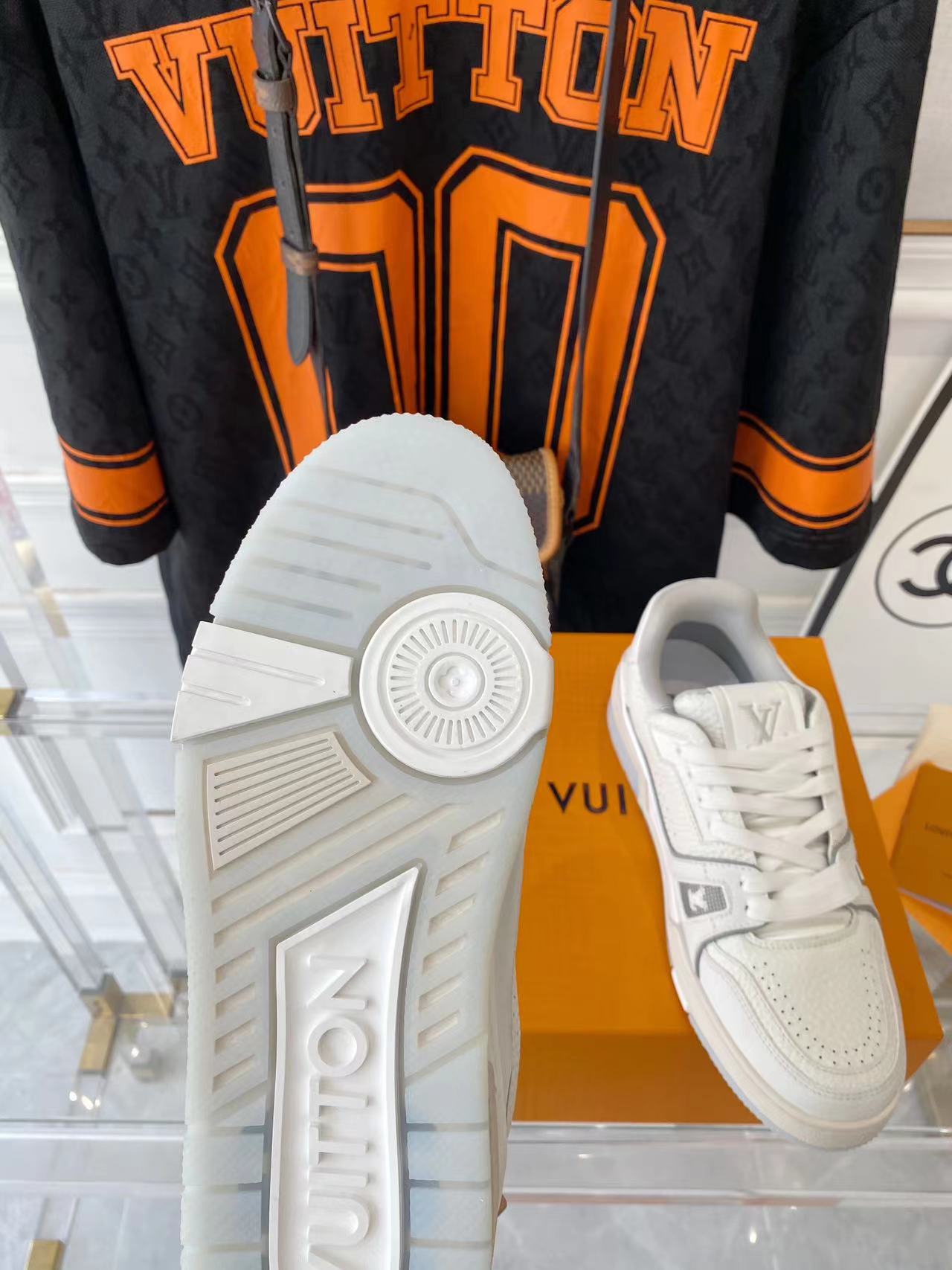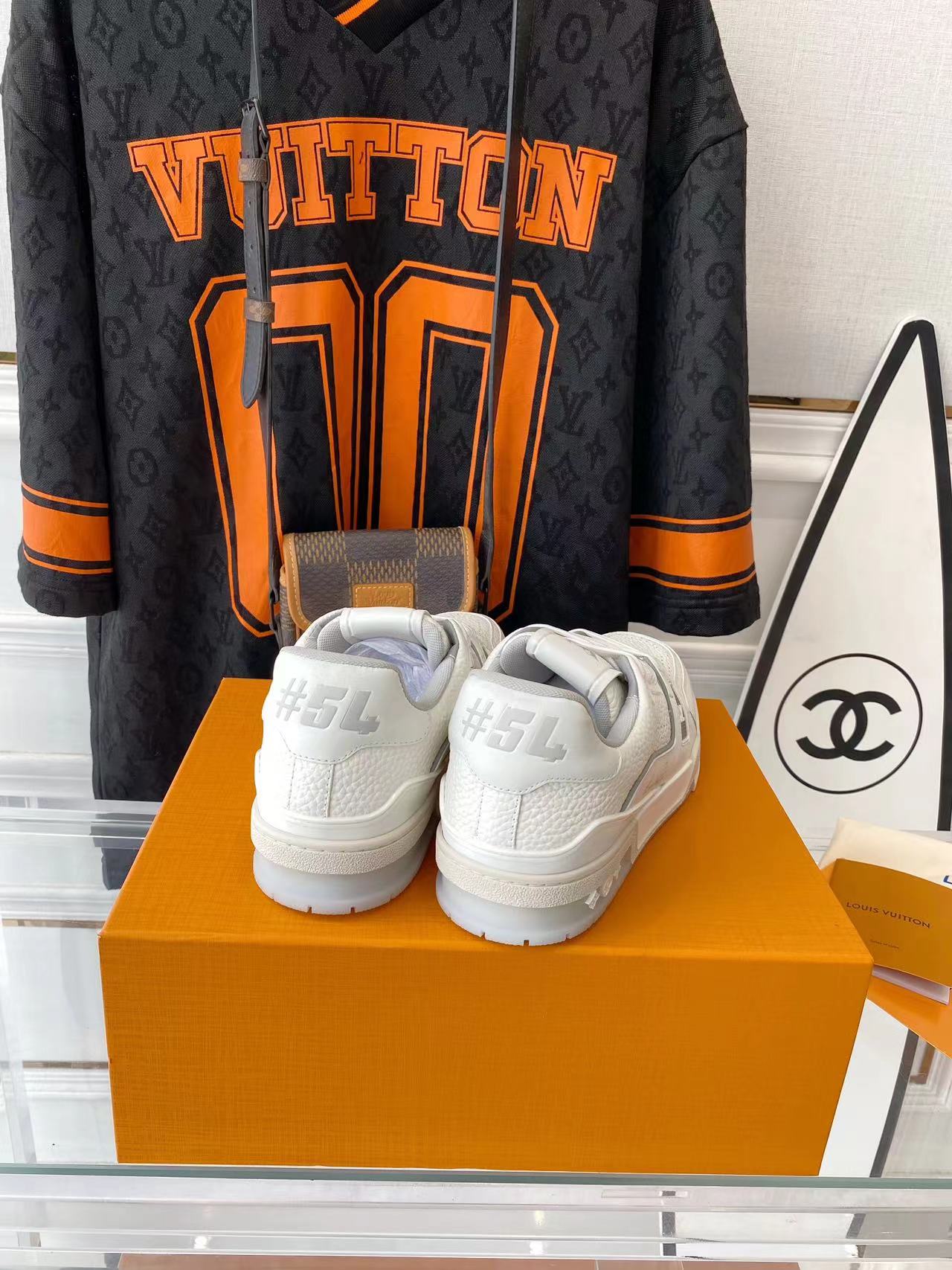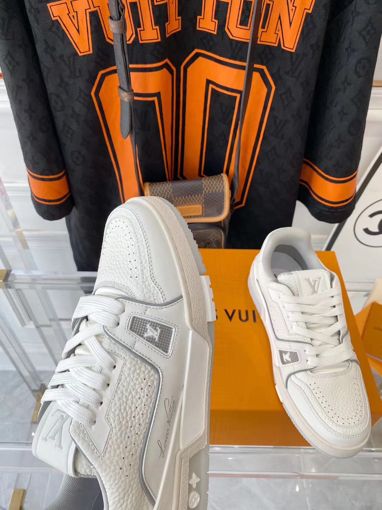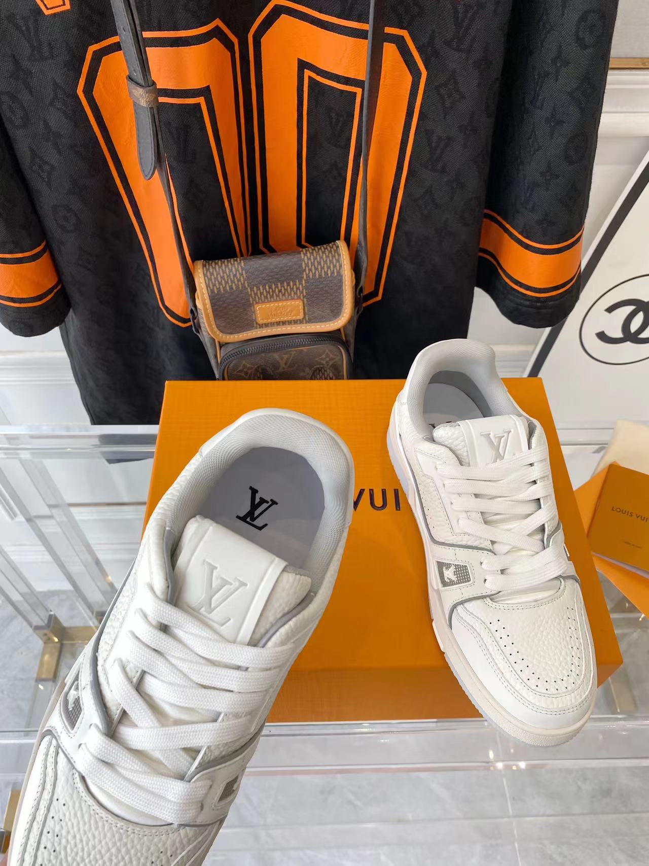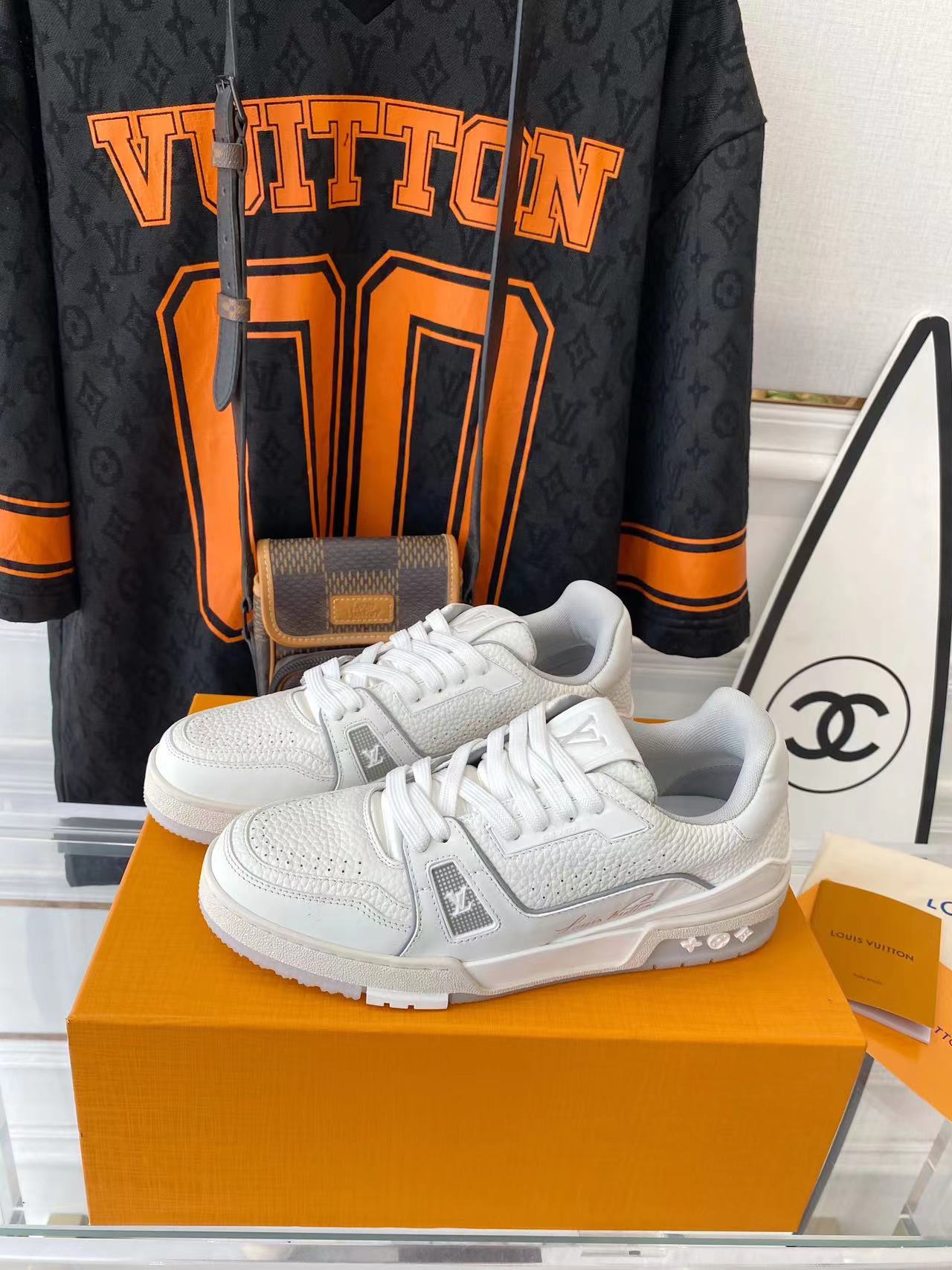 ???? ??L. The ??TRAINER sneaker, a favorite of Virgil Abloh, the artistic director of men's wear, is made of Monogram embossed calfskin and has a mesh lining. The innovative TPU 3-color outsole is decorated with Monogram flowers.