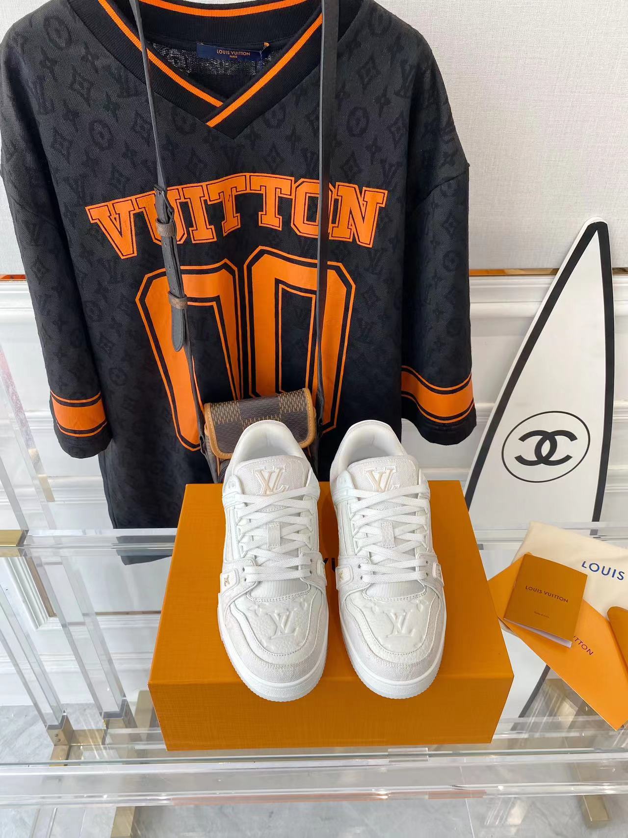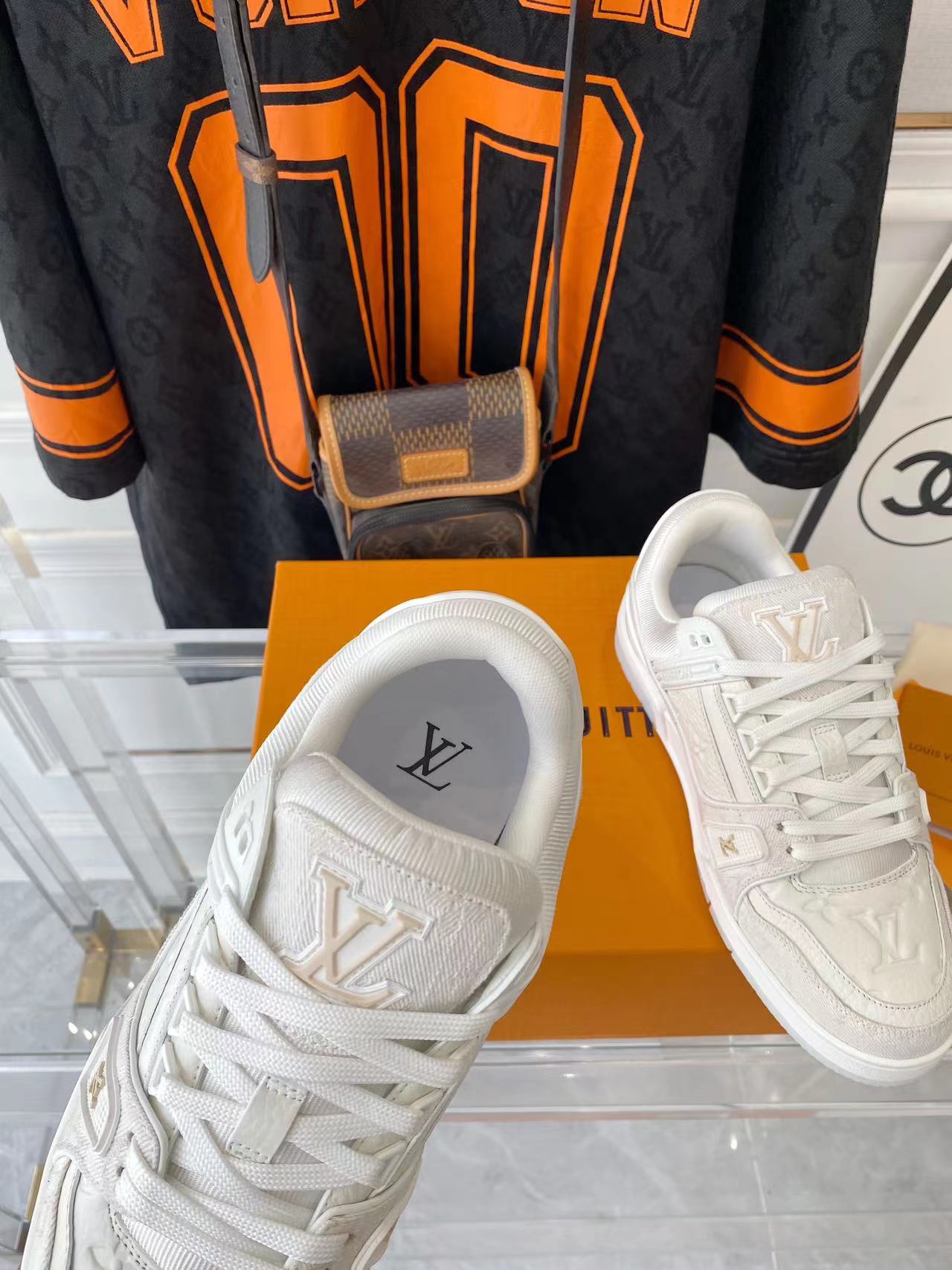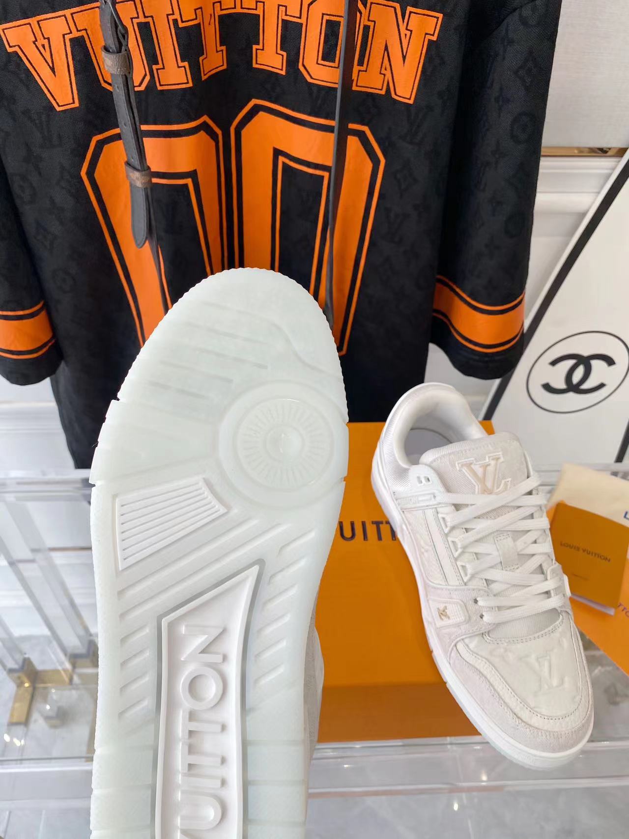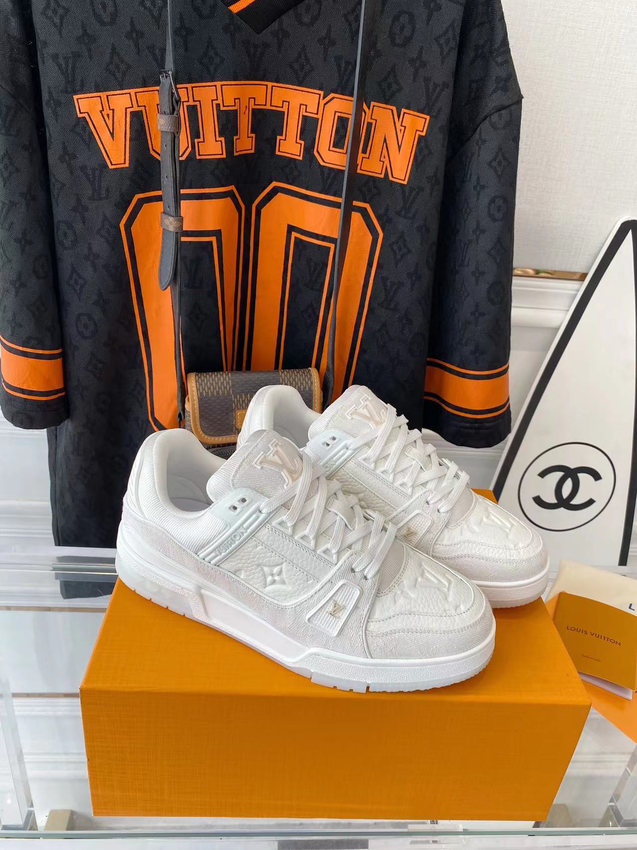 ???? ??L. The ??TRAINER sneaker, a favorite of Virgil Abloh, the artistic director of men's wear, is made of Monogram embossed calfskin and has a mesh lining. The innovative TPU 3-color outsole is decorated with Monogram flowers.